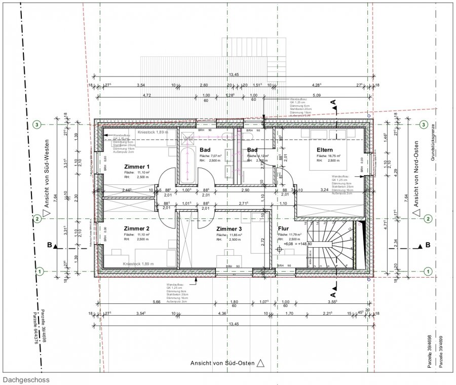 Suite parentale : +/- 16.75 m² avec salle de douche privative avec fenêtre